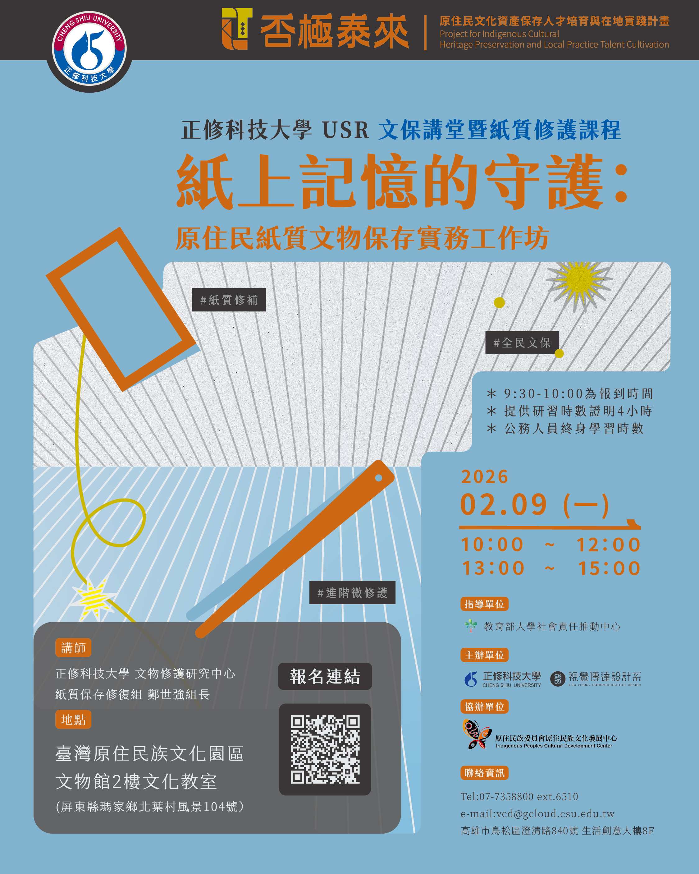📜紙上記憶的守護:原住民紙質文物保存實務工作坊——文保講堂暨紙質修護課程|開放報名中!