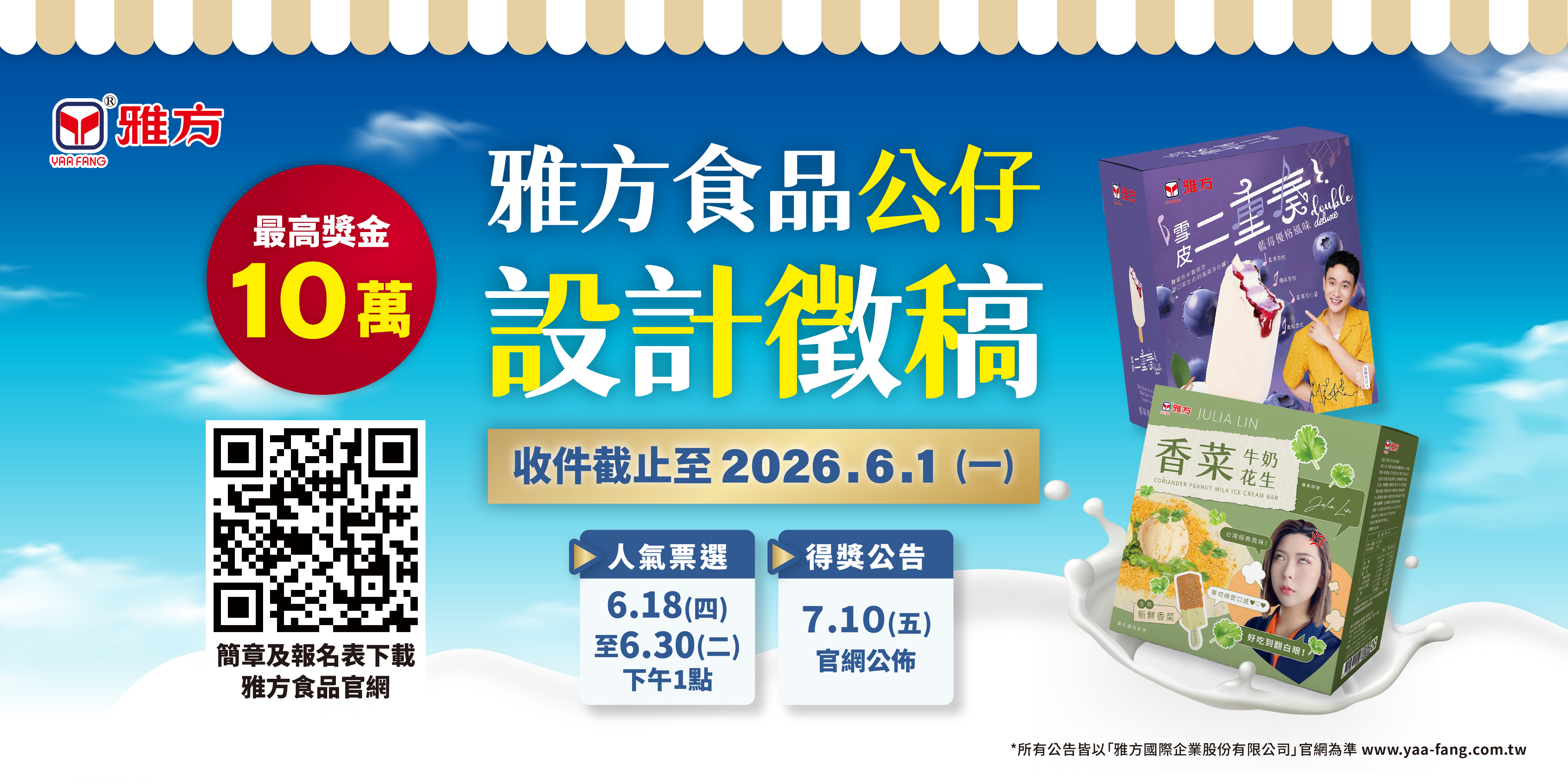 初審入圍網路人氣獎票選(IG與FB各錄取3名) ◎票選網址於雅方IG與FB粉專 |